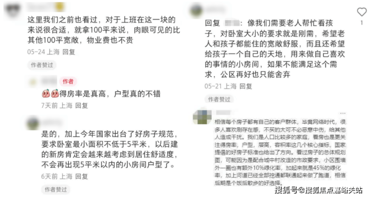 另外在社交媒体上,众多业主纷纷为项目低容积率、户型得房率、景观河道等点赞。