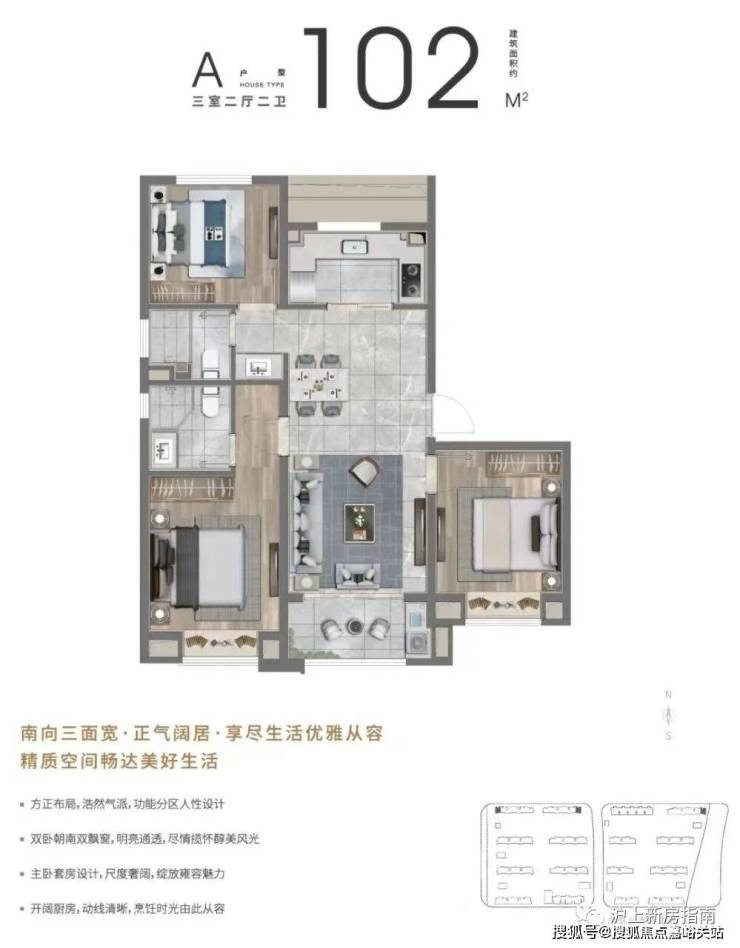 南区由8幢12F小高层与8幢8F洋房组成,享3.1米阔绰层高;超3.5米大面宽,全区奢配中央空调,甄选国际名品厨电与卫浴洁具,精装交付拎包入住。