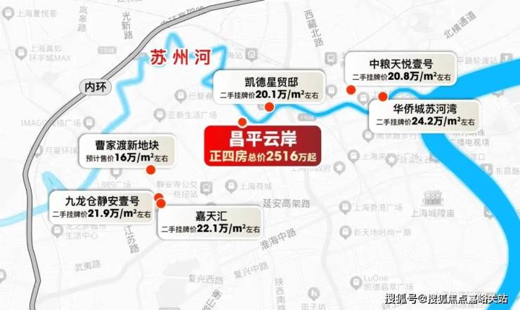 ☑️☑️昌平云岸售楼处电话:400-9975-759☑️☑️板块内的二手次新房价格比黄浦只高不低, 九龙仓和嘉天汇等盘二手挂牌价都在22万/㎡左右,4房户型起步也要4千万。