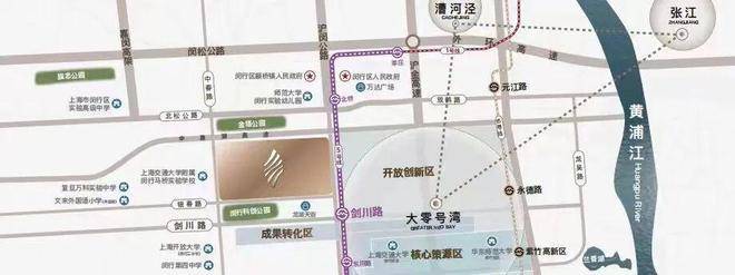 项目与5号线剑川路站的直线距离仅有1km左右,通过5号线可以直达莘庄城市副中心,并换乘1号线到达徐家汇、人民广场等核心CBD