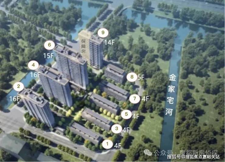 根据设计方案显示, 项目拟建4栋14-16层的小高层住宅与5栋4-5层的叠拼。