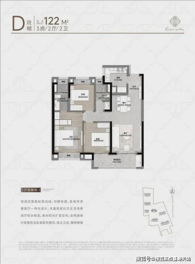 四大轴线:三个入口轴线和中心水轴。全区花园式入户体验,入户门楼结合花坛景墙和别致的地坪铺装,为业主提供尊享、温馨的归家体验。