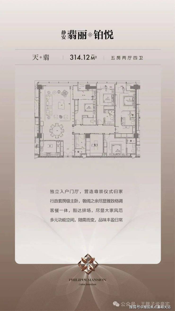 天翡户型:约314㎡|5房2厅4卫(独立入户+3套房)。