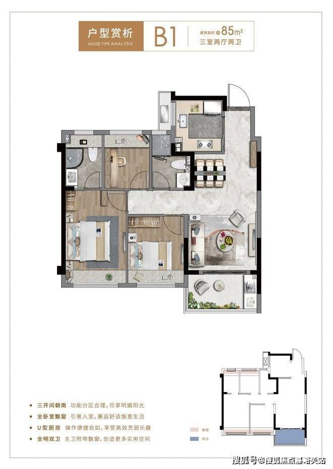 瞰景高层 / 73㎡二房一卫,85㎡、99㎡三房二卫