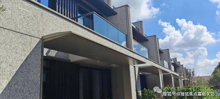 联排建筑立面上进口金钻麻石-全石材铺装搭配咖色的铝板装饰线条,不同凡响的精奢感和厚重的质感,卓尔不群,放眼整个松江,难觅雷同。