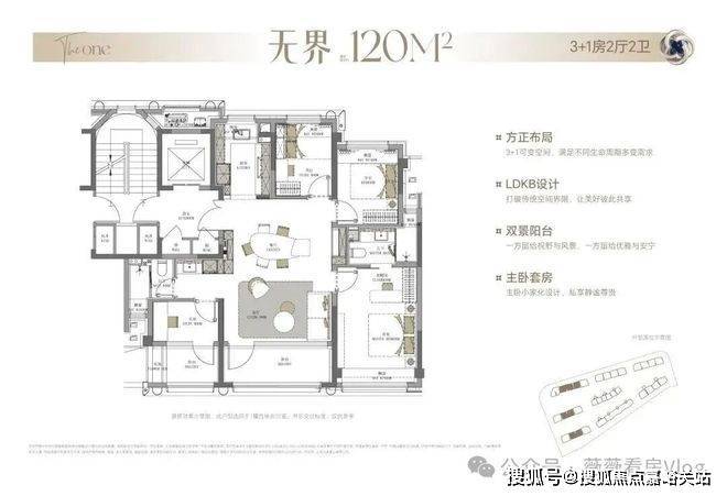以约13.95米的南向超大面宽为基调,主卧面宽升级至约4.15米,规划可自由定义的X灵动空间 ,可以是书房、茶室或琴房,伴随家庭全周期成长而演变,让每位家人都能获得精神的沉淀与自我的和解。 面宽约5.8米双厅则完全超越功能范畴 ,成为承载家族宴请、圈层社交的恢弘场域,尽显居者的格局与风范。 270°转角巨幕视野 ,将光、风与景致更大程度地引入室内。