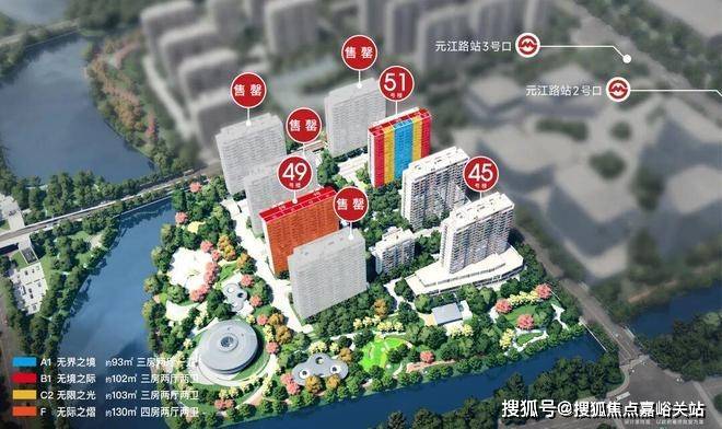体量:总建面约 102 万㎡,复合住宅、商业、办公、教育、生态七大业态;容积率 2.3、绿化率 35%,70 年住宅产权
