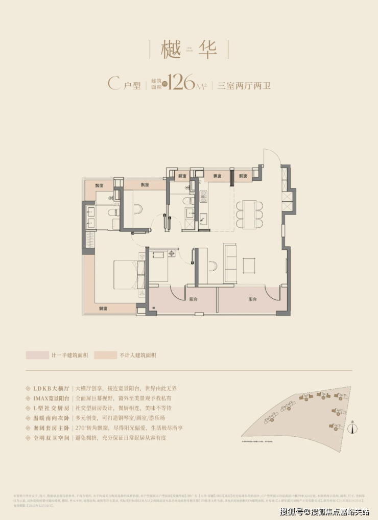 建面约126㎡三房两厅两卫,南向的总体面宽达到惊人的约 13.2m, 可以媲美市面上很多150㎡起步的豪宅产品的面宽了。