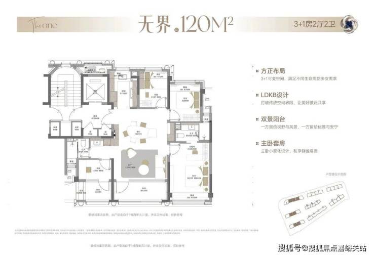 项目放弃刚需小户型,起步即约120㎡3+1房,从户型根源上筛选圈层,让居住氛围更统一、更纯粹,也为未来保值打下基础。