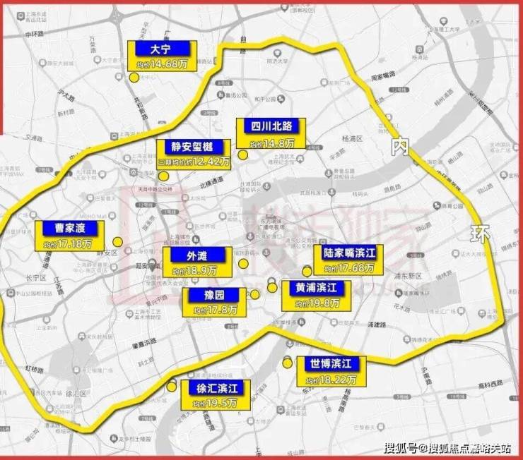 可以看到,最直观的对比就是四川北路与大宁,两大板块与静安玺樾的直线距离都在3km以内, 其中大宁地处内中环,新盘均价也已俨然来到了14.68万!