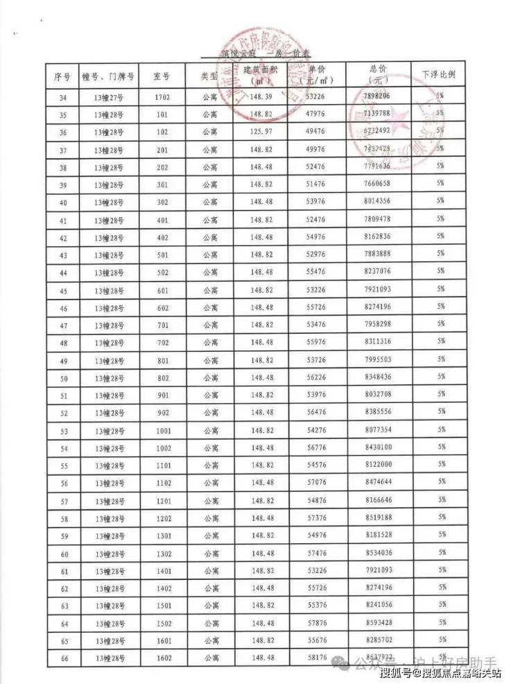 中国铁建·西派云间一房一价表: