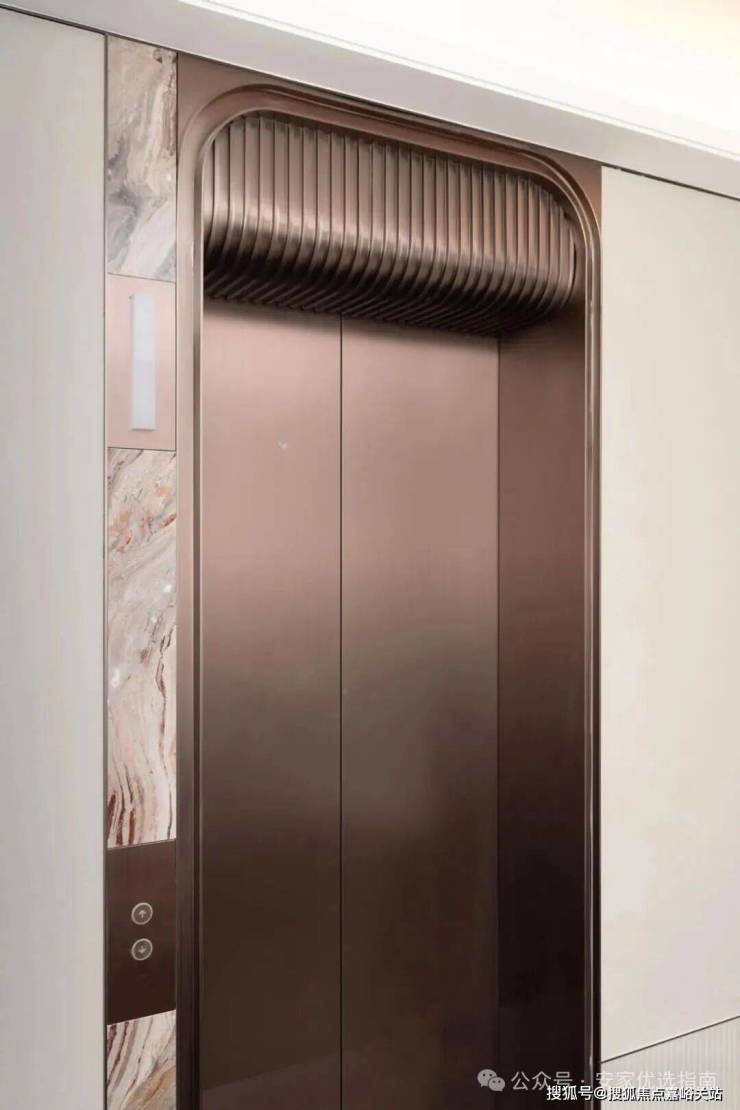 :南入户大堂约 6.2 米挑高穹顶,以夸张的弧形造型搭配棋盘格吊顶,石材拼接均匀如镜面,金属线条与石材纹路形成 “方圆之境”,归家仪式感拉满;