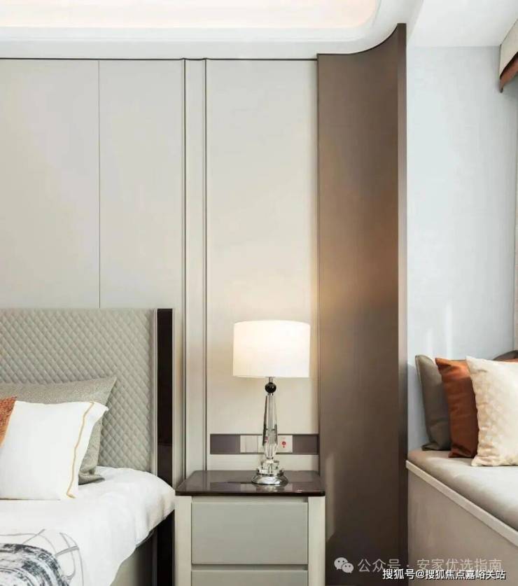 踏入样板间的第一秒,你会发现这里 几乎“看不到一个直角”:墙面转角、吊顶边缘、门套线条,甚至石材台面与柜体边缘,均以流畅圆弧替代生硬直角。