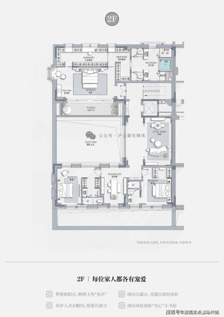 • 一层长辈套房设计,南向独立小庭院,莳花弄草,晨练太极自在四季