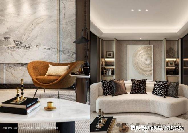 客厅背景墙的“烟雨江南”天然大理石,✨✨✨【金茂璞元】售楼处电话:4001185086✔✔✔❤❤❤不同于传统平面背景墙,通过弧度及立体的造型处理,并镶嵌不锈钢材质。