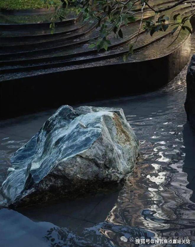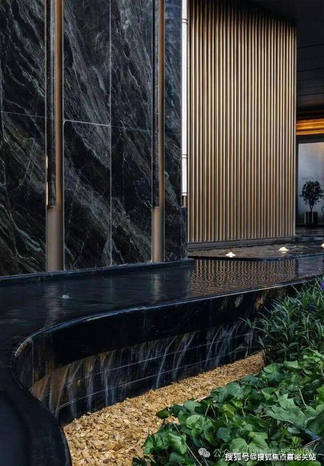 门庭前约29m对称式迎宾水轴,✨✨✨【金茂璞元】售楼处电话:4001185086✔✔✔❤❤❤约7m直径落客水盘,水盘底部为“五绝”之巴西银河金奢石[流金银河],以水刀一圈圈切割行纹,形成层层叠水效果,✨✨✨【金茂璞元】售楼处电话:4001185086✔✔✔❤❤❤呈现出“金石为开”的视觉奇观。