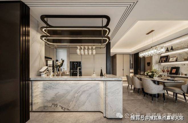 厨房与餐厅打造半开放式格局,✨✨✨【金茂璞元】售楼处电话:4001185086✔✔✔❤❤❤隐形推拉门既可以隔绝烟火,平时收入墙内让空间一体、开阔大气。