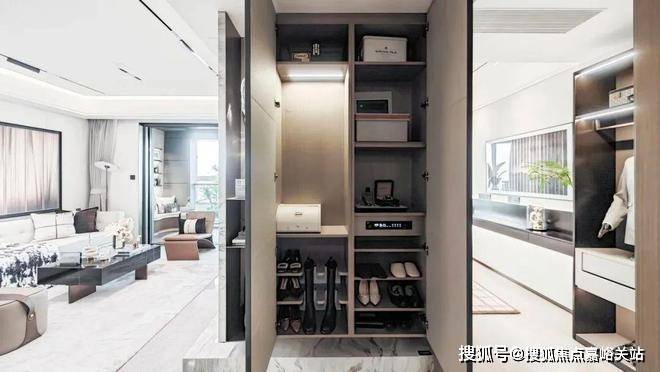 中环云悦府售楼处电话:400-8824-198入户后,玄关柜也是交付标准,不仅配备了“除臭精灵”,下方更预留了扫地机器人的空间,整个精装不仅是单纯的大牌堆砌,更体现了“拎包入住”的实用性。