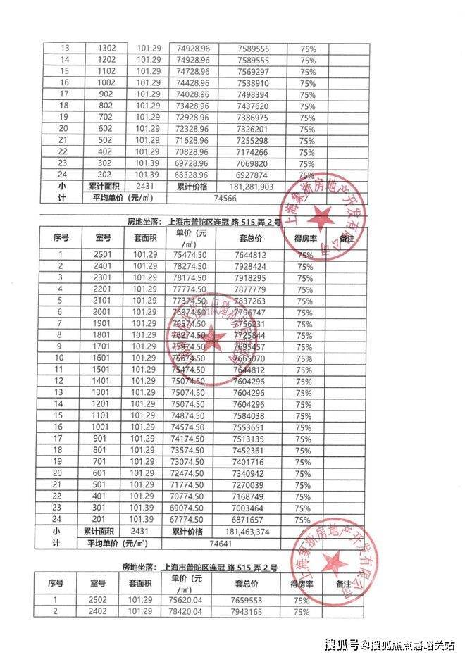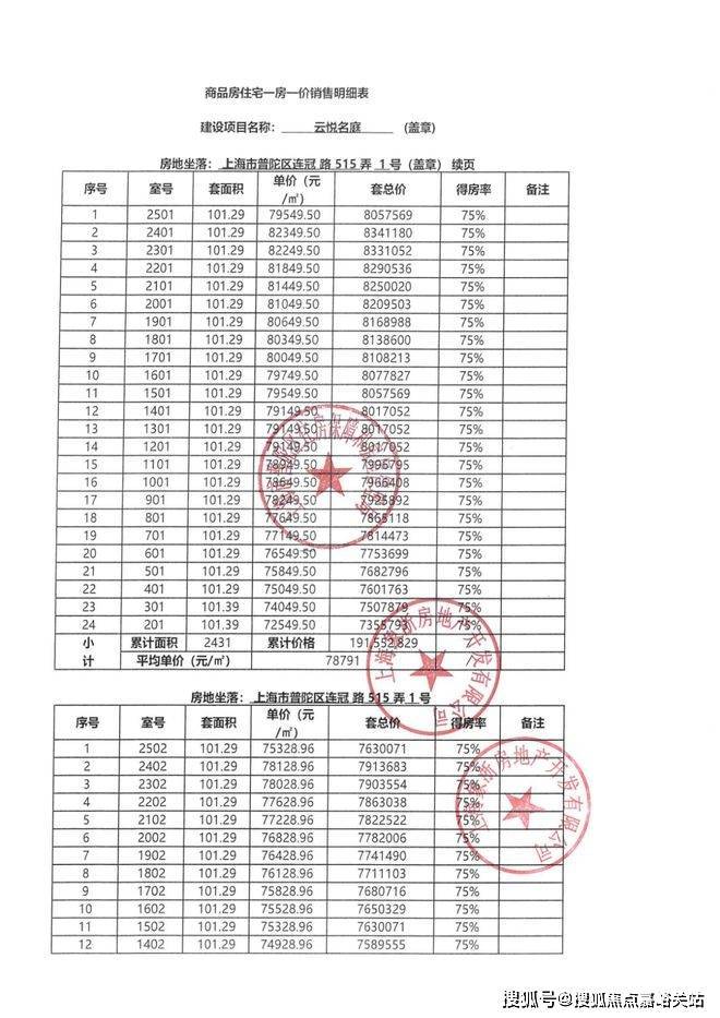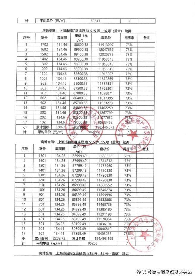 267、均价:单元或整个项目总销售额除以可销售面积得出的价格。