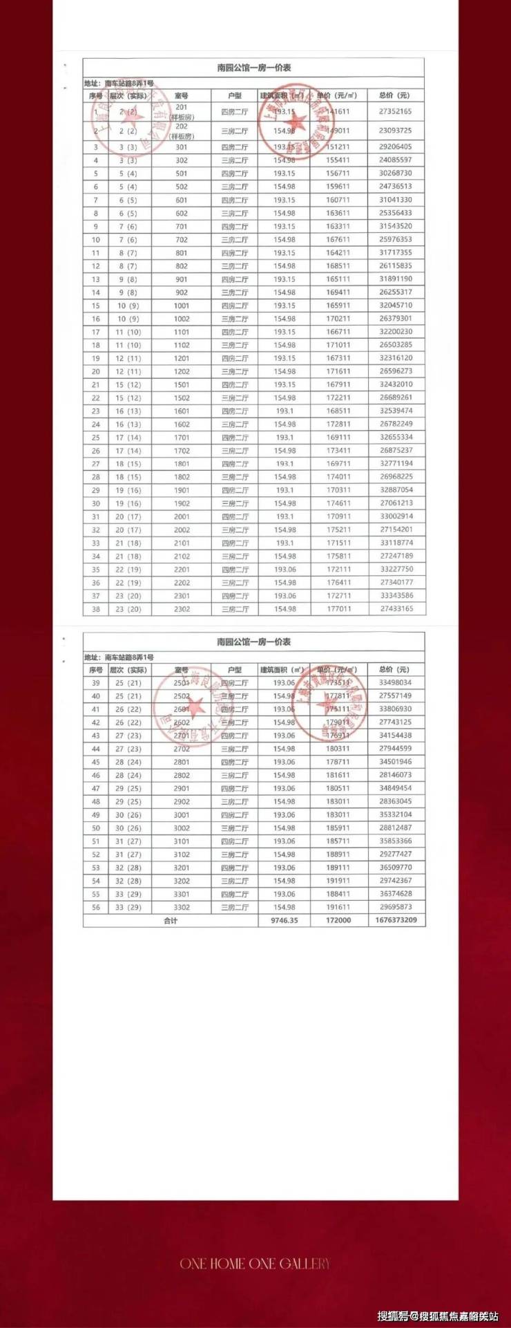 一房一价表