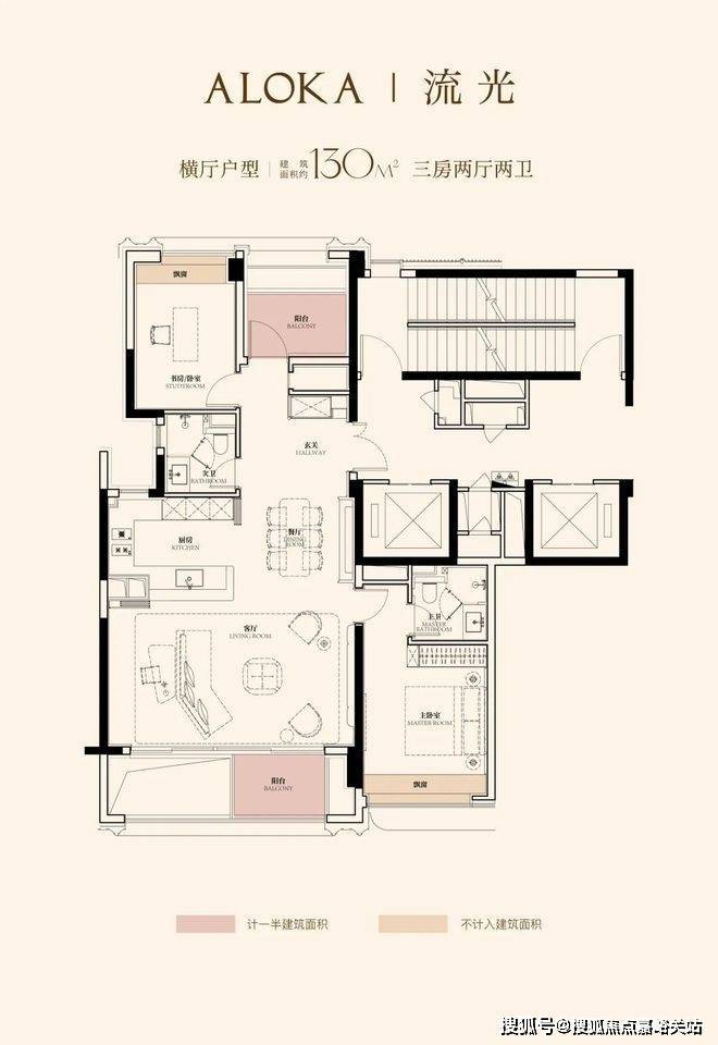 建面约130㎡户型,金茂以极致空间造诣,将每一寸面积都用到淋漓尽致。