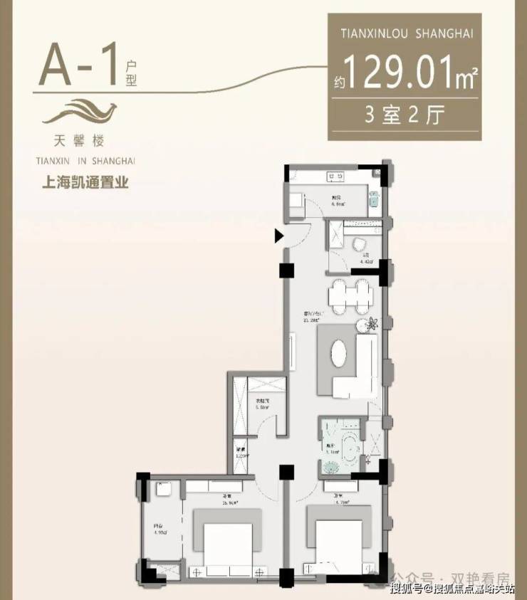 ● A户型(129.01㎡):三室两厅一卫,优化空间动线,专为改善型家庭提供优雅生活范本。
