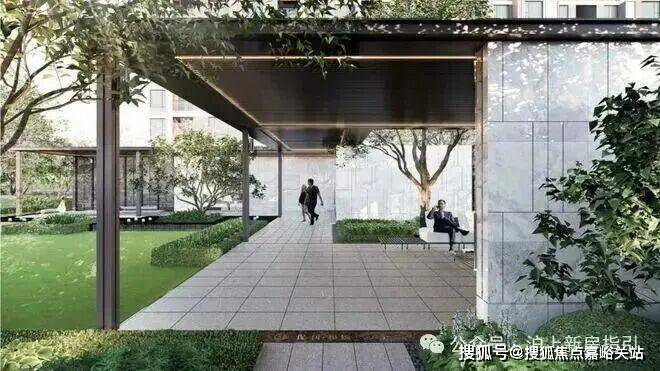 品质归家轴:贯通主入口+对景空间+架空层+社交花园港湾,形成一体化泛会所客厅空间;