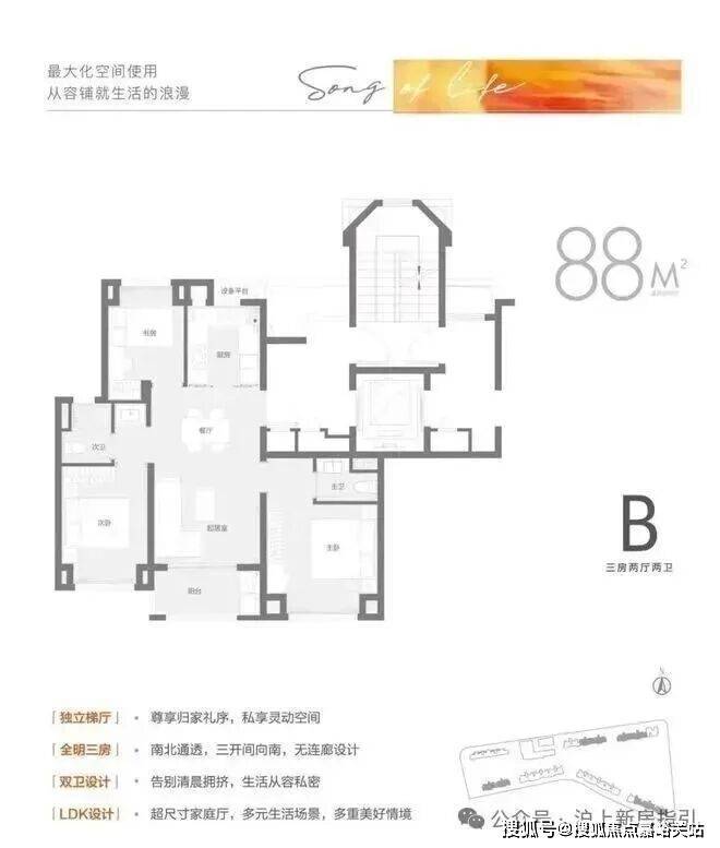 建面约88㎡3房2卫,预计总价约291万起;