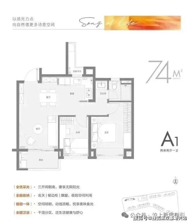 建面约74㎡2房1卫,预计总价约231万起;