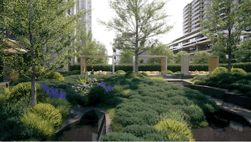 创新打造层层露台+ 垂直⽣态体系,将庭院托举至云端,让每一位居者都能拥享有天有地的院落体验,实现上下叠庭院平权。