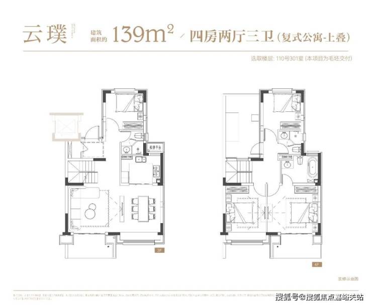 项目叠墅户型有建面约142㎡下叠,建面约139㎡上叠。