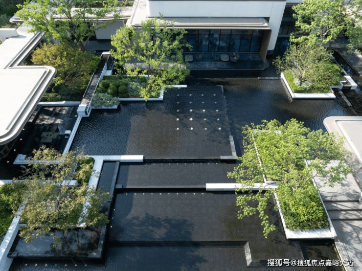 示范区首批次公开的约650㎡的无界水院,通过层层叠水与精选树种的巧妙搭配,展现了水院的悠然意境。