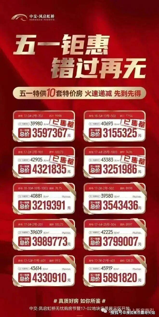中交凤启虹桥售楼处电话☎:400-856-9058☑️☑️目前项目三批次全系产品,刚刚推出了建面约74-144㎡2/3/4房,总价仅约296万起,正火爆热销中!具体楼栋产品落位如下:中交凤启虹桥售楼处电话☎:400-856-9058☑️☑️