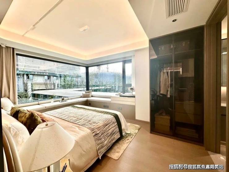 主卧套房设计,创新打造270°景观飘窗,有效延伸室内空间及功能,景观视野绝佳!