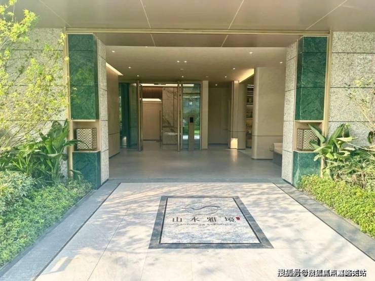 酒店式入户大堂通过石材、香槟金铝板和绿色奢石打造,也是精致有格调!