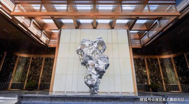 外滩源著复兴里以 现代海派风格 打造尊享仪式入口空间,门庭规制尽显典雅,为归家动线赋予满满礼仪感。大门中央“寻石问礼”主题造型雕塑,选用摩登海派高定材质,将传统意蕴与当代东方美学相融。
