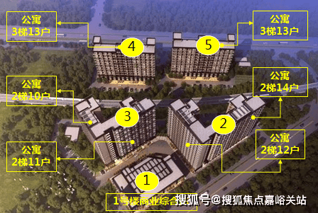 规划共5栋楼,1号楼为商业综合体,2-5号楼为酒店式公寓。2、3号楼总高16层,2号楼东南面为2梯14户,西南面为2梯12户,3号楼东南面2梯11户,西南面2梯10户;4、5号楼总高12层,设计为3梯13户,共计1069户。