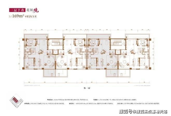 建面约169㎡4房2厅3卫(一层下叠):
