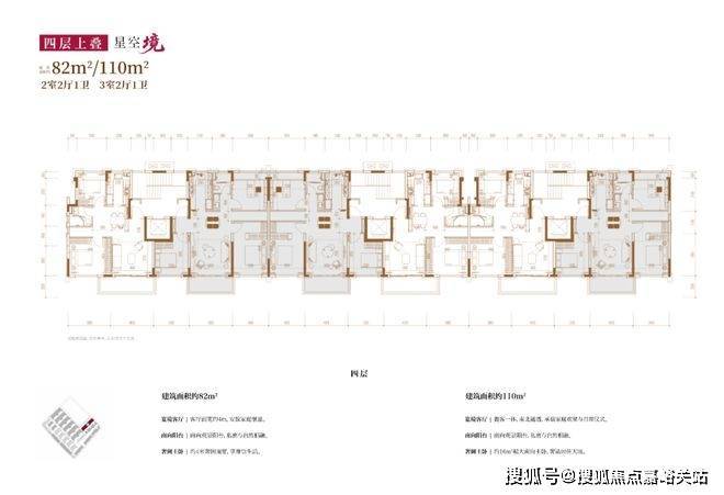 建面约82㎡2房2厅2卫/110㎡3房2厅2卫(四层上叠):