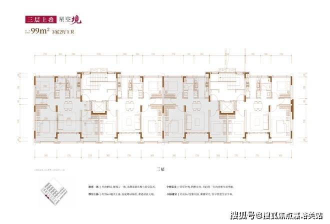 建面约99㎡3房2厅2卫(三层上叠):