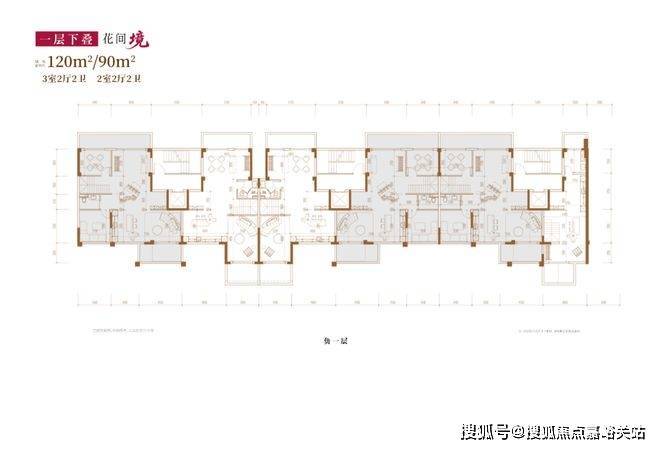 建面约120㎡3房2厅2卫/90㎡2房2厅2卫(一层下叠):