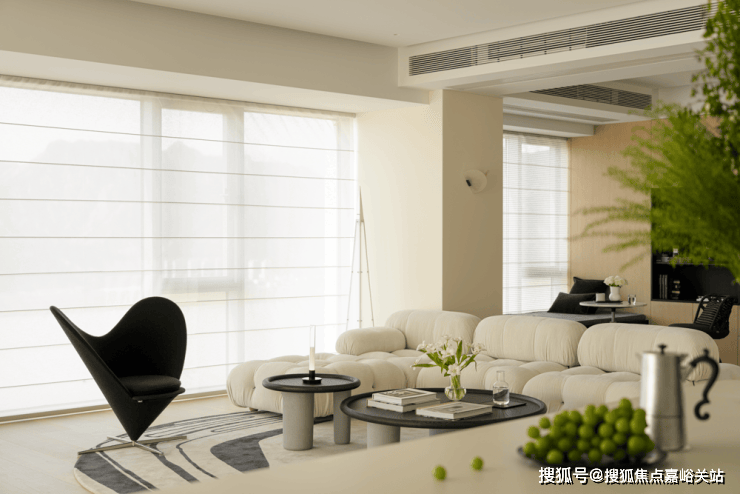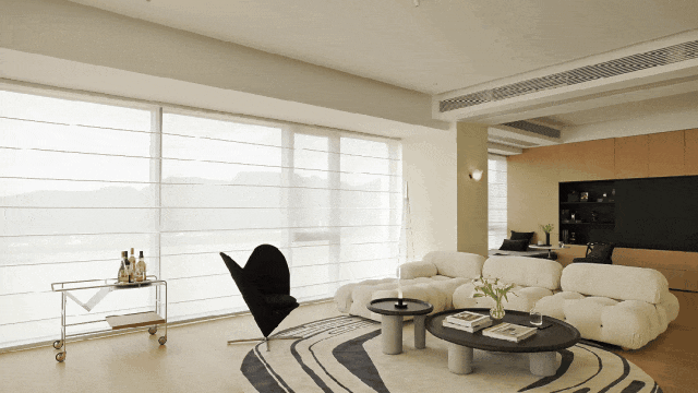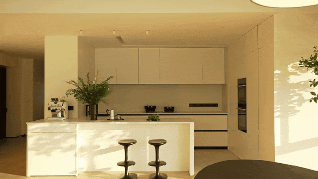 全开放式设计,岛形沙发打破边界,让交流随光影自由发生。午后的光线从侧面洒落,家具被赋予立体的光影层次。