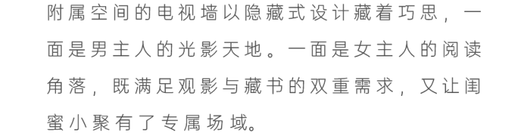 中央的B&B Camaleonda模块组合沙发,以岛状布局重构空间逻辑,双向陈设的低椅背设计。一面朝向书柜电视墙,一面衔接餐厨区。让场景切换随心意而生,既保持空间通透感,又以功能分区提升使用效率。