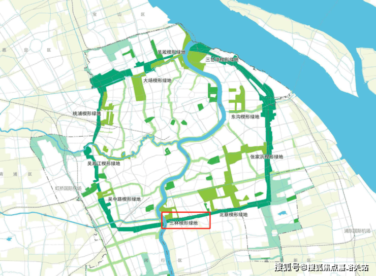 从《上海2035主城区绿地网络规划图》来看,项目所在的三林段外环绿带是最生态的一段,也是最宽的一段 ,最大进深超过2公里,规划总绿地面积达到约456公顷!
