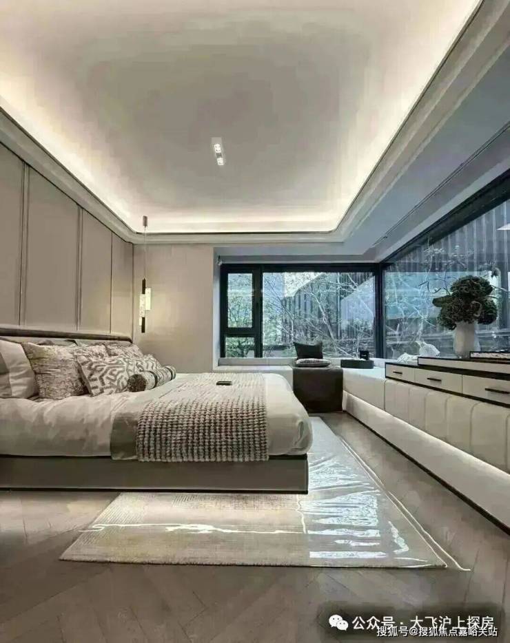 尤其是主卧大套房安排上独立衣帽间+独卫,配上270度的转角飘窗,一扇窗就是一幅流动的四季自然画。