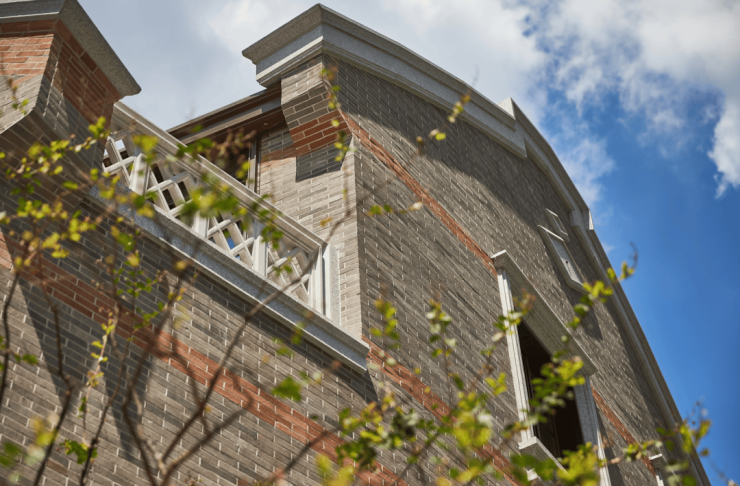 整个立面的工艺细节到何等程度?当你去看转角的砖块处理,都是完全对缝的,甚至还采用了许多异型砖来保证立面的效果。