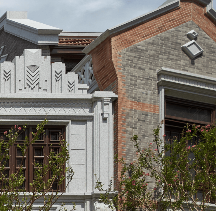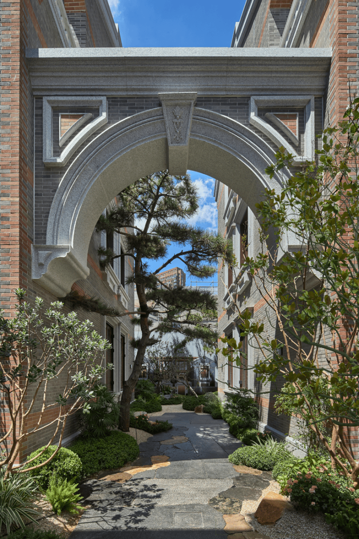 为了还原最海派风貌的青砖色彩,灰色与红色的砖都各自采用了四种色彩上墙,并按照7:41:42:10的比例做了非常均衡的调配,极其考究。