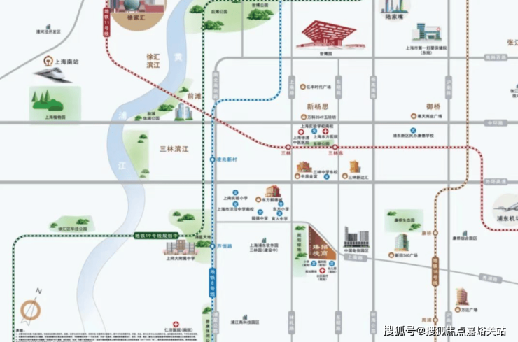 全维醇熟配套,进一步凸显项目的居住价值与核心优势。交通方面,项目坐拥立体交通网络,自驾可快速接入林海公路、外环高架、中环路,高效通达城市各核心区域[2][5];周边直线3公里范围内有2个地铁站,距离最近的三林东地铁站交通便捷,步行约1公里内有11个公交站,距离最近的上南路东明路站仅129米,公共交通极为便捷,满足日常通勤与出行需求[1][6]。