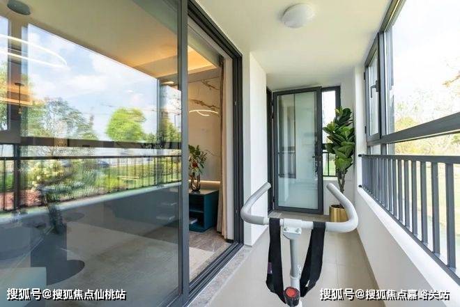 南向宽幕阳台,可以打造出多重场景,除了晾晒、洗衣之外,也可以健身、画画、品茶聊天。
