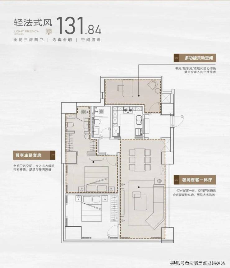 户型设计上,打破公寓常规暗间的局限,项目全部设计成全明2房或3房格局,做到没有一个暗间的居住空间,并全系标配主卧套房+双卫配置,提升居住配置。